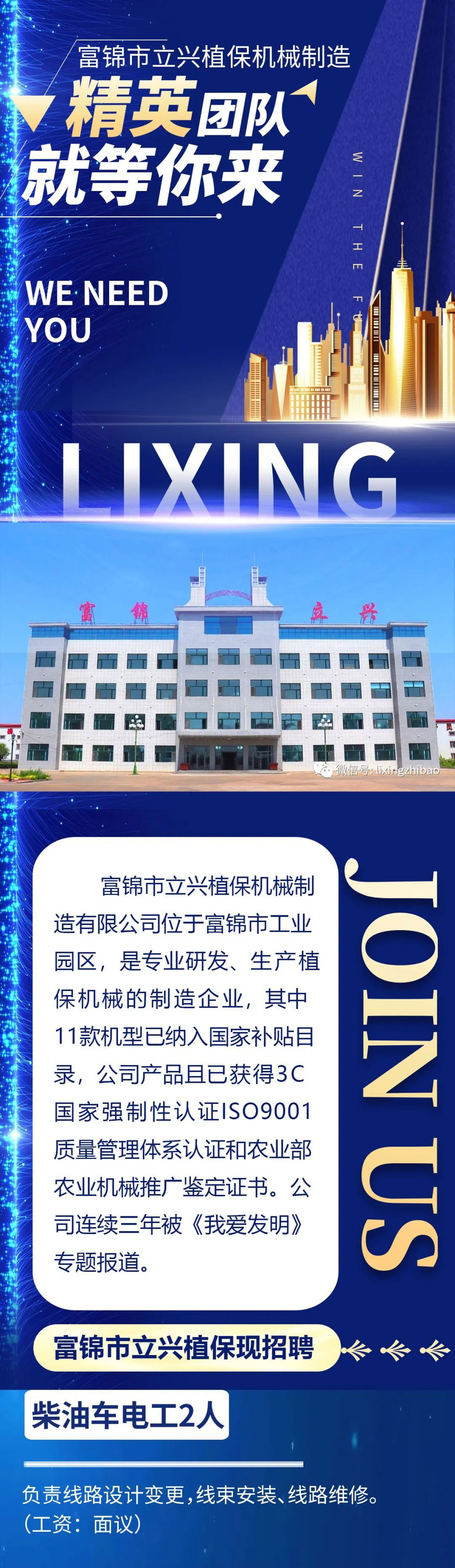 富錦市立興植保機械制造有限公司誠聘英才