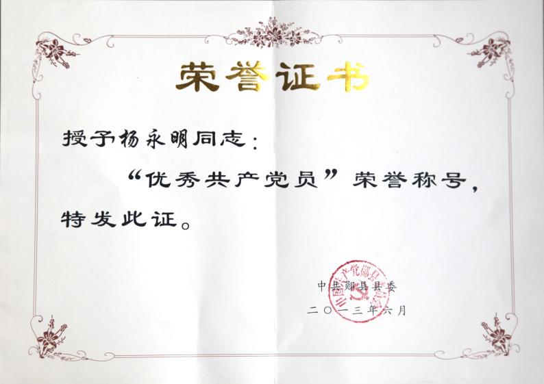 喜訊:“七一”建黨前夕,公司黨支部書記、總經(jīng)理楊永明同志被中共鄖縣縣委授予“優(yōu)秀共產(chǎn)黨員”榮譽稱號